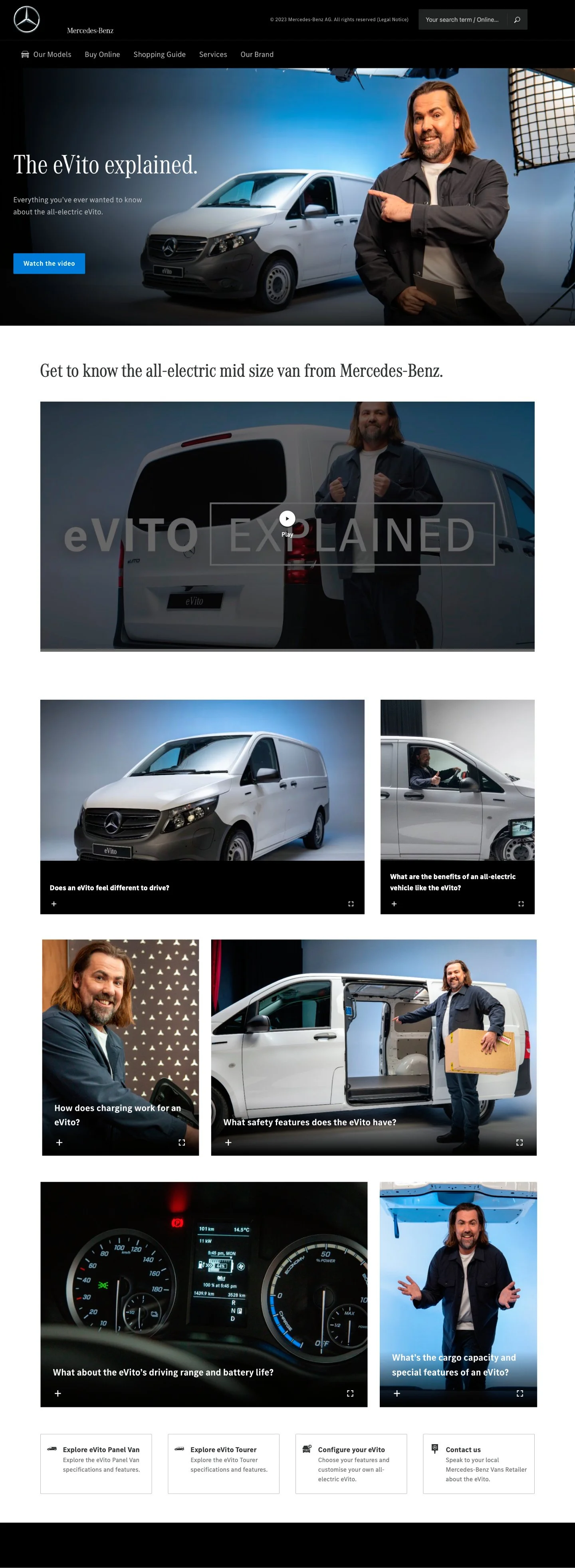 To familiarise potential customers with the latest all-electric vehicle from Mercedes-Benz, the eVito, we created a product explainer video designed to be anything but dull. By conveying important information in a humorous way, we kept viewers engaged while educating them on the van's capabilities and features.